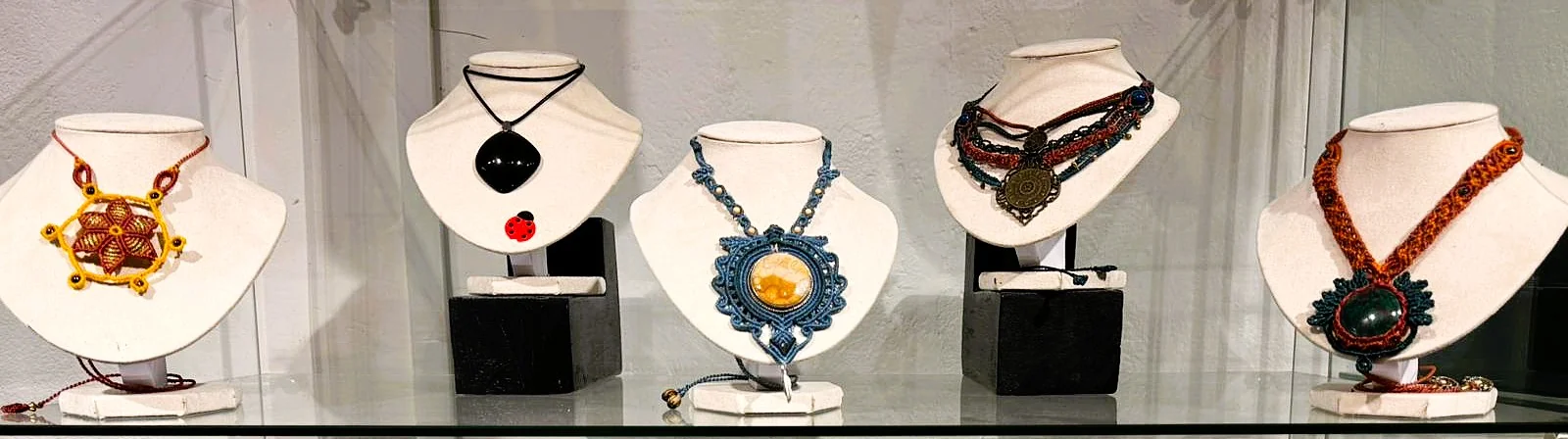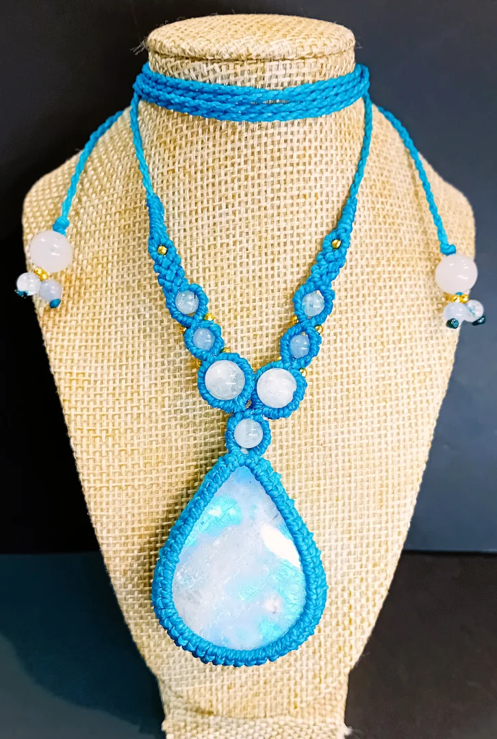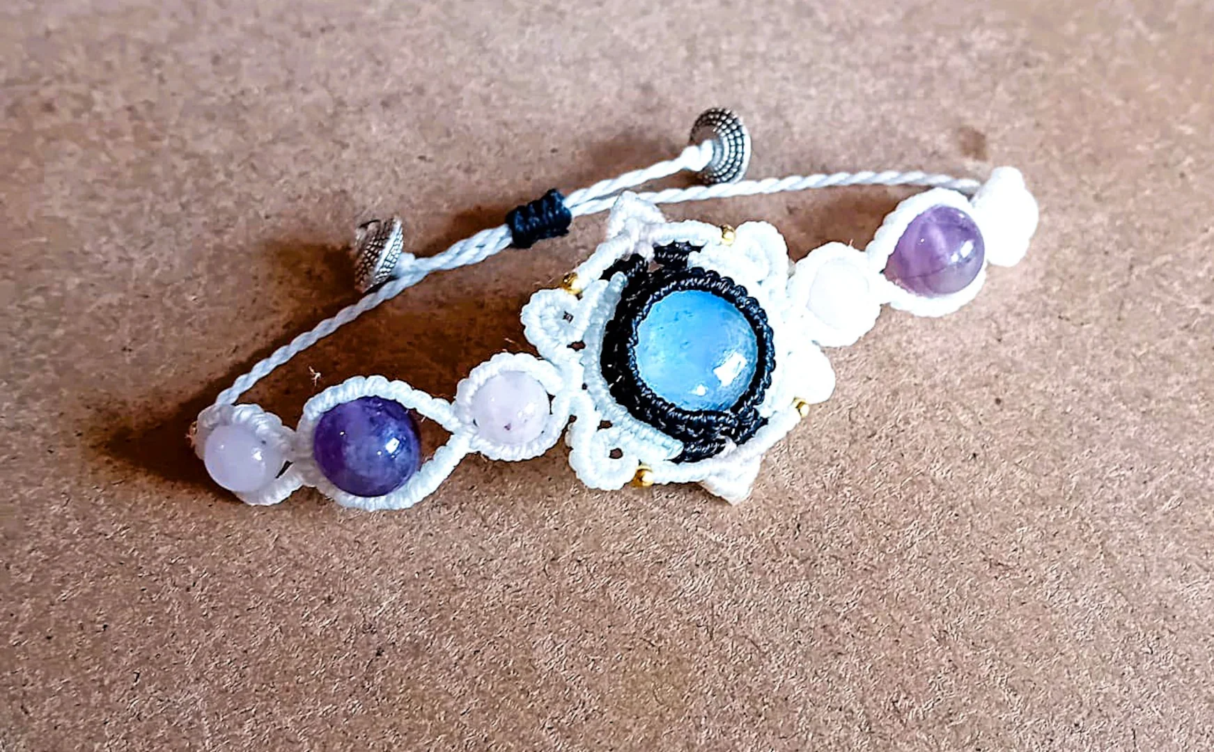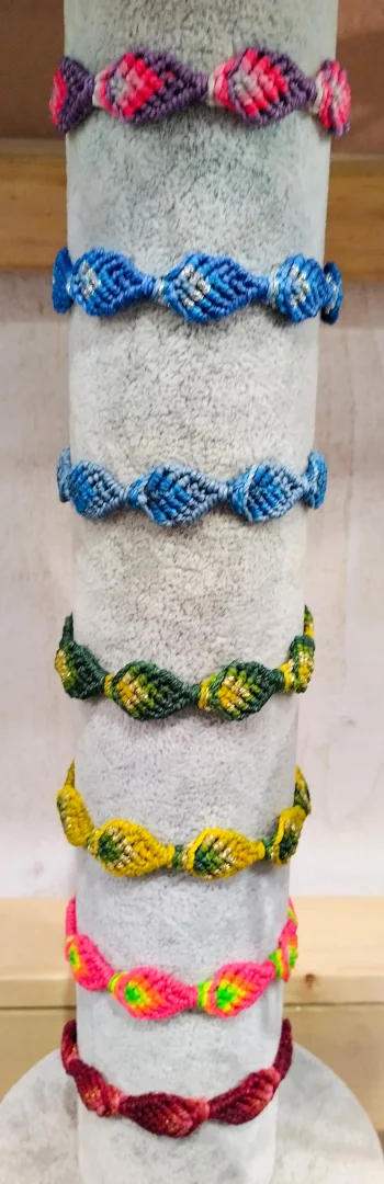 Bijoux tissés en micro-macramé (colliers. bracelets, bagues), lithothérapie, pierres semi-précieuses…