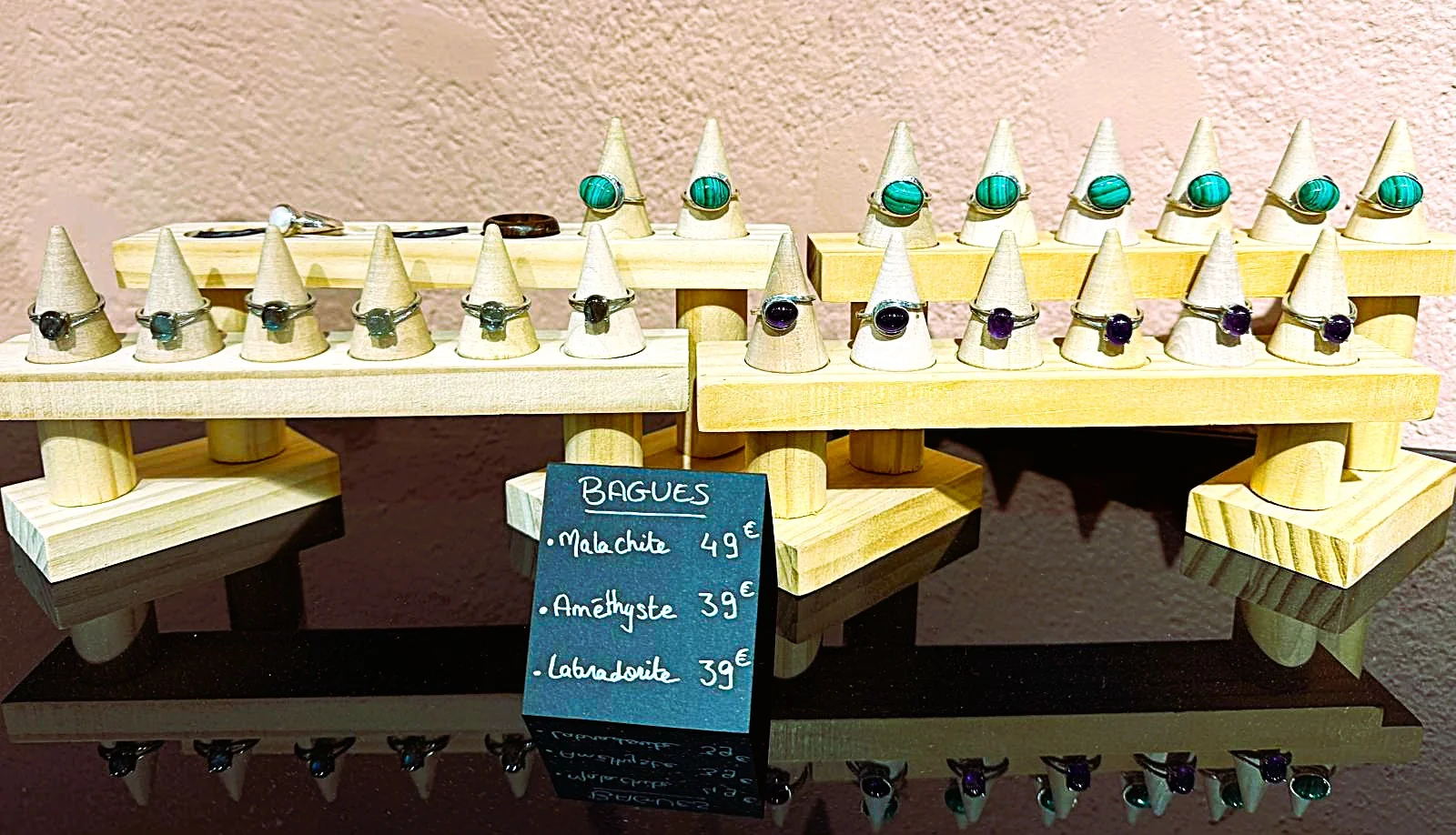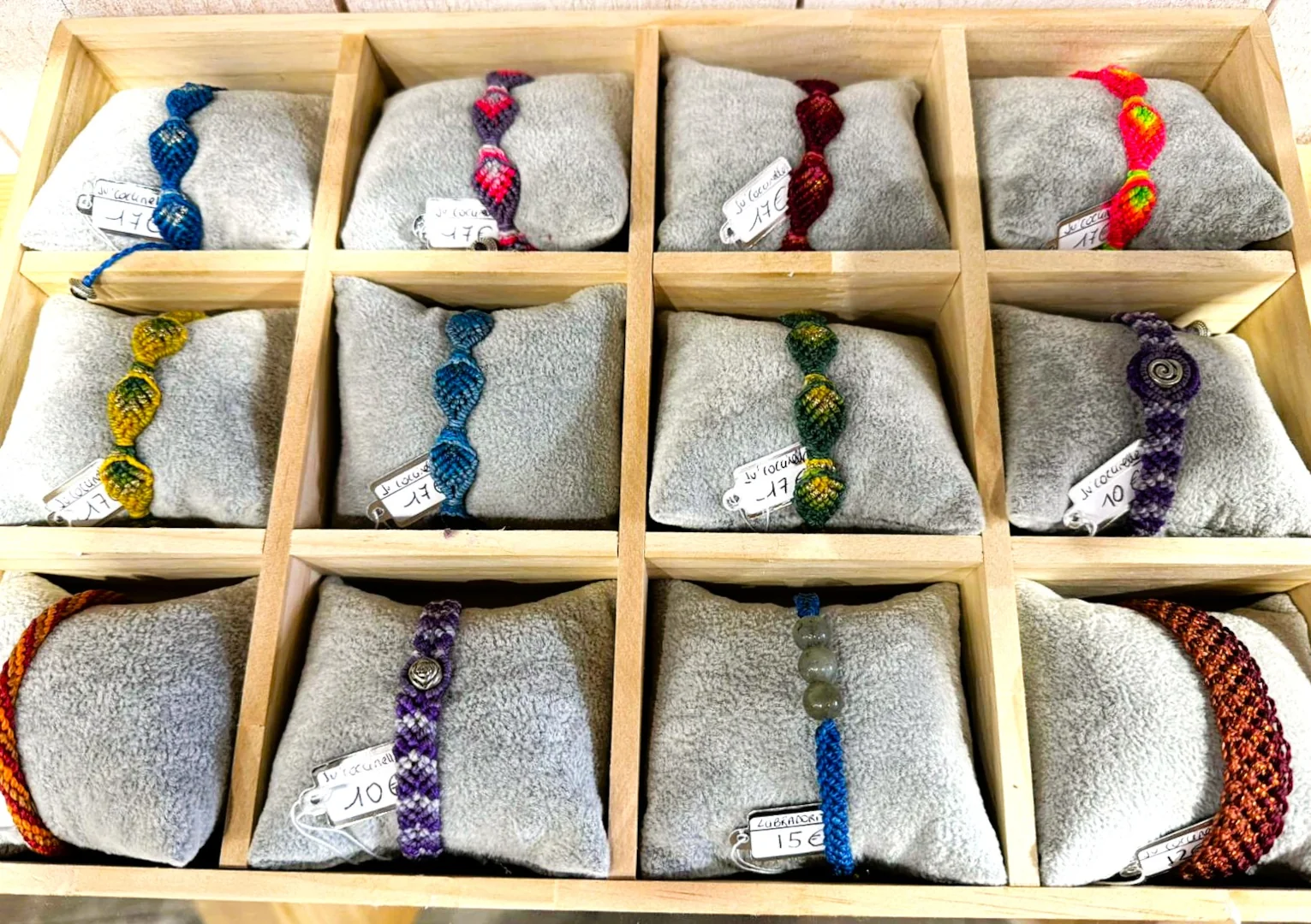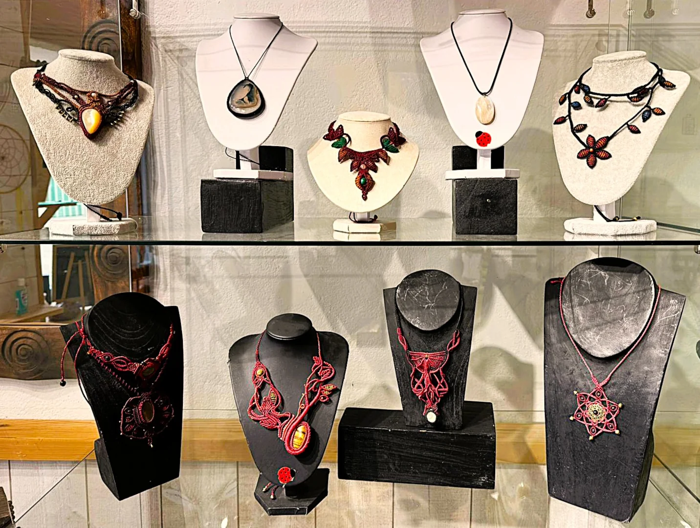 Bijoux tissés en micro-macramé (colliers. bracelets, bagues), lithothérapie, pierres semi-précieuses…
